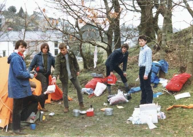 Note Silver D 1983 at one of their expedition camp sites. Group comprised :- Ricard Seaward, Neil Whettam, Philip Cooke, Neal Fishwick, Richard Frankland and Andrew King. One of these is missing from photo.