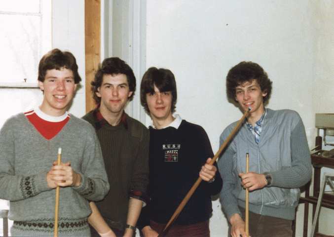 Note Paul Guyler, Darrell Harman, david Lodge and Bernard Gore (L to R), relaxing in the games room at Bryn Ddu hostel.